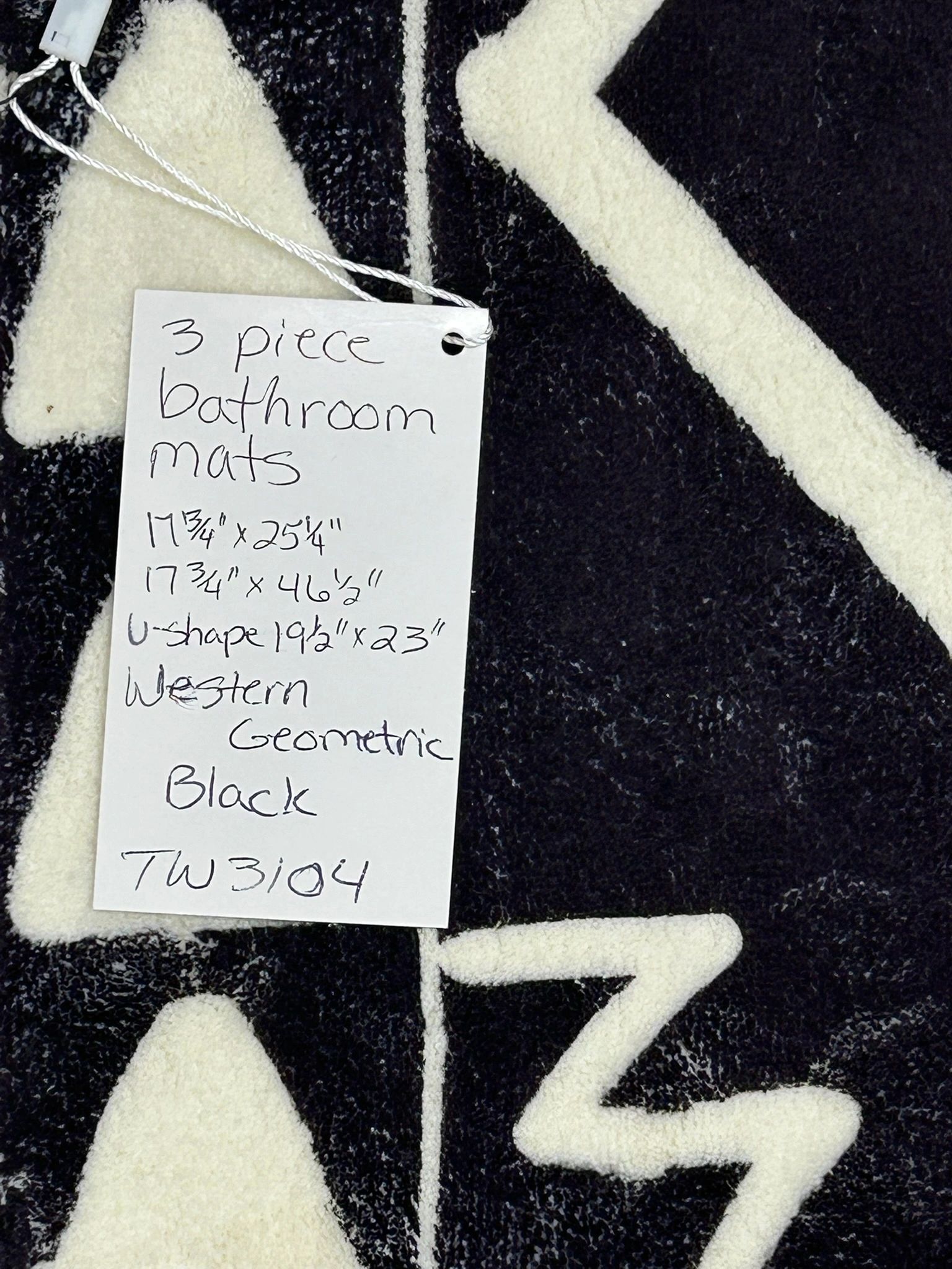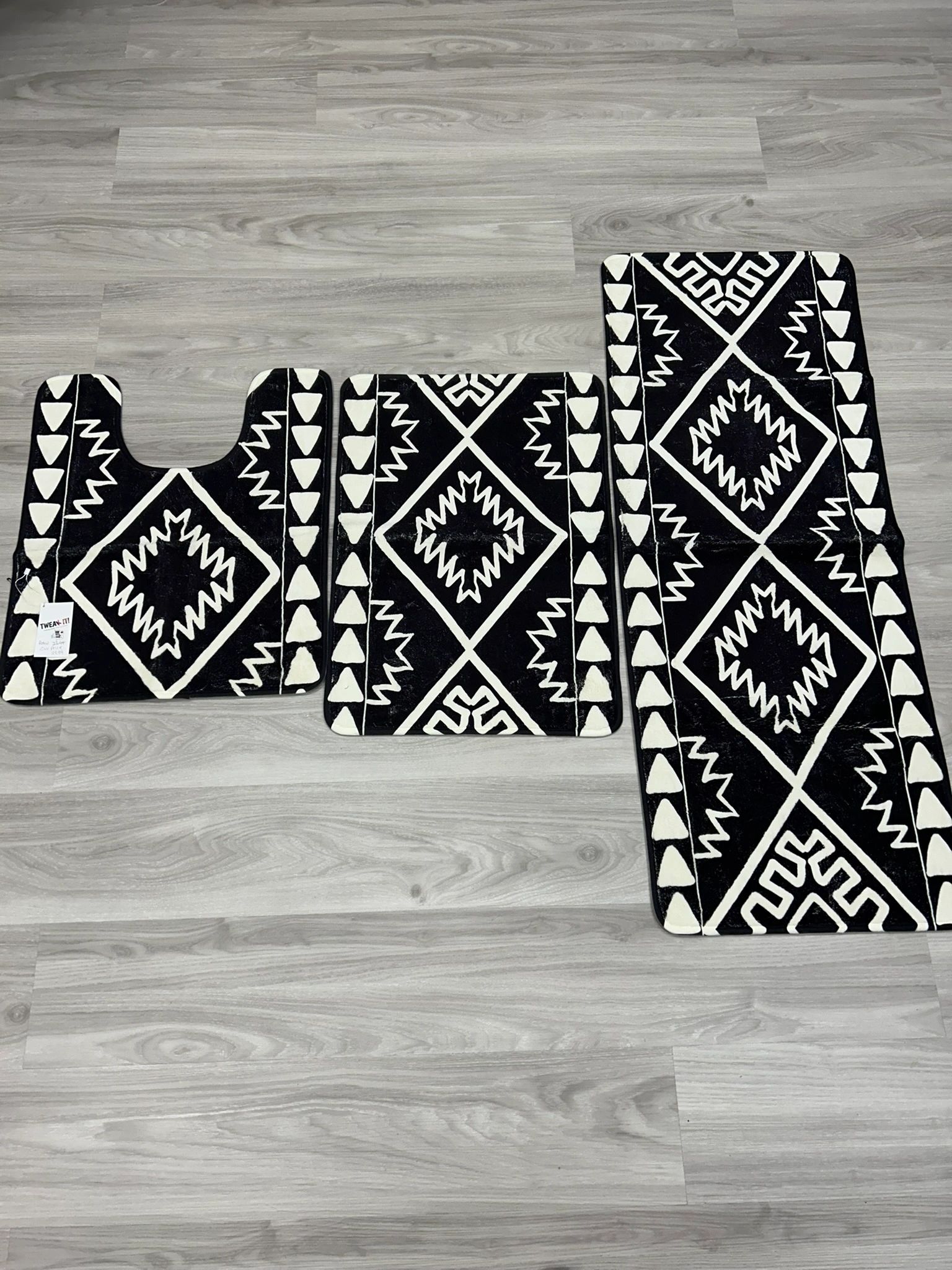 Uphome Boho 3 Piece Bathroom Rug Set Black Soft Non-Slip Bathroom Runner with U-Shaped Contour Toilet Mat Machine Washable Western Geometric Bathroom Mats for Bathroom Tub, Shower