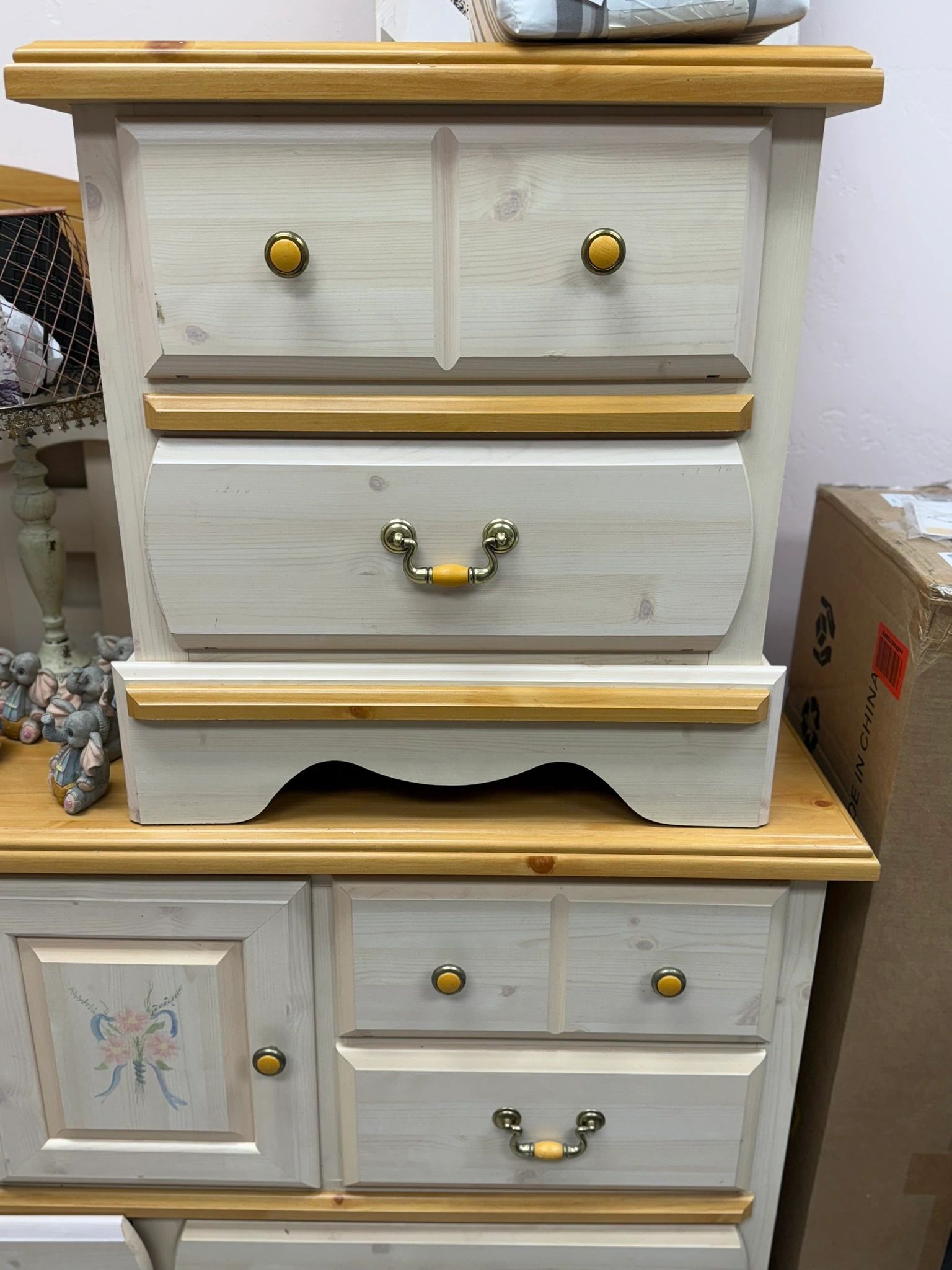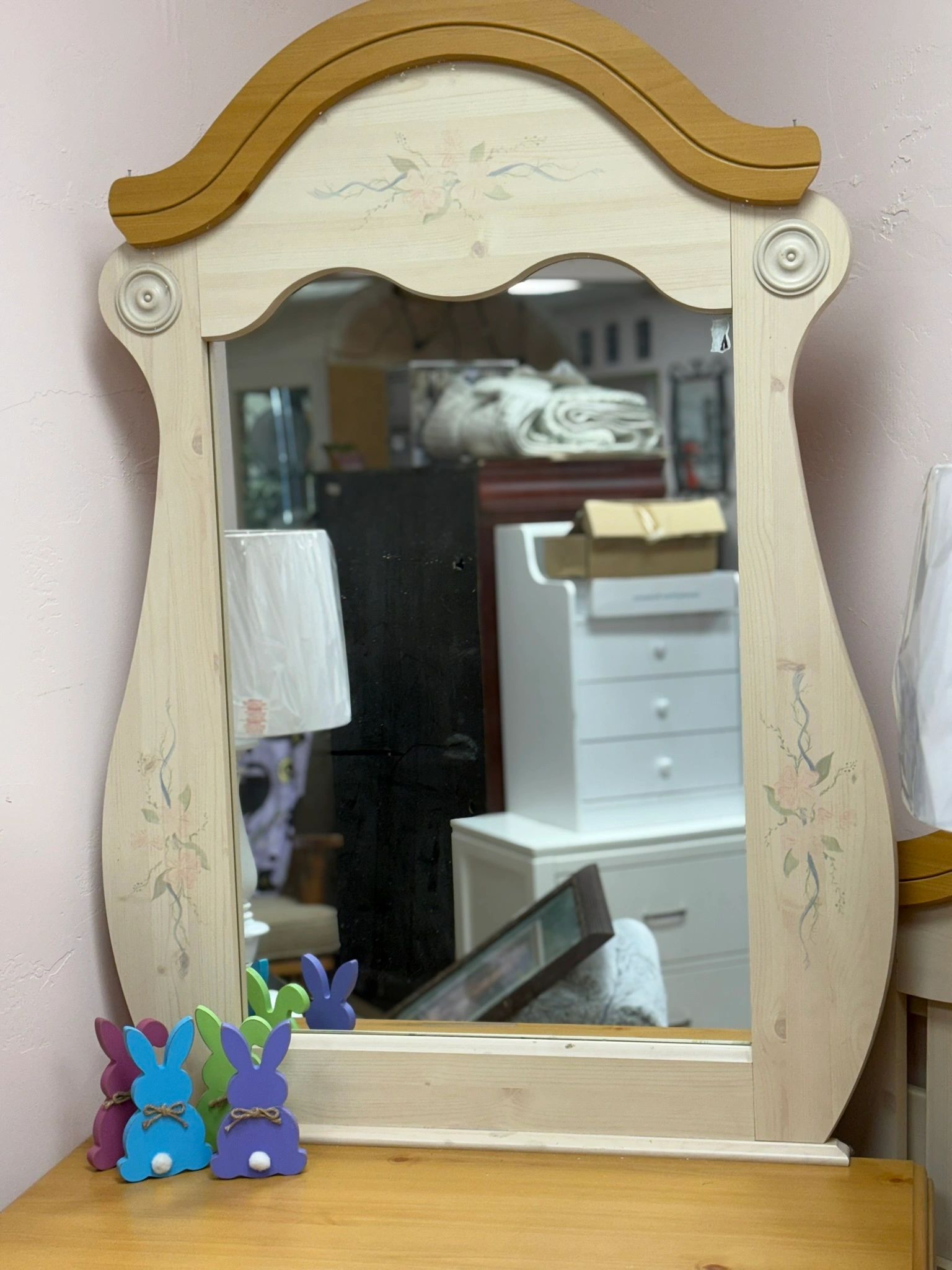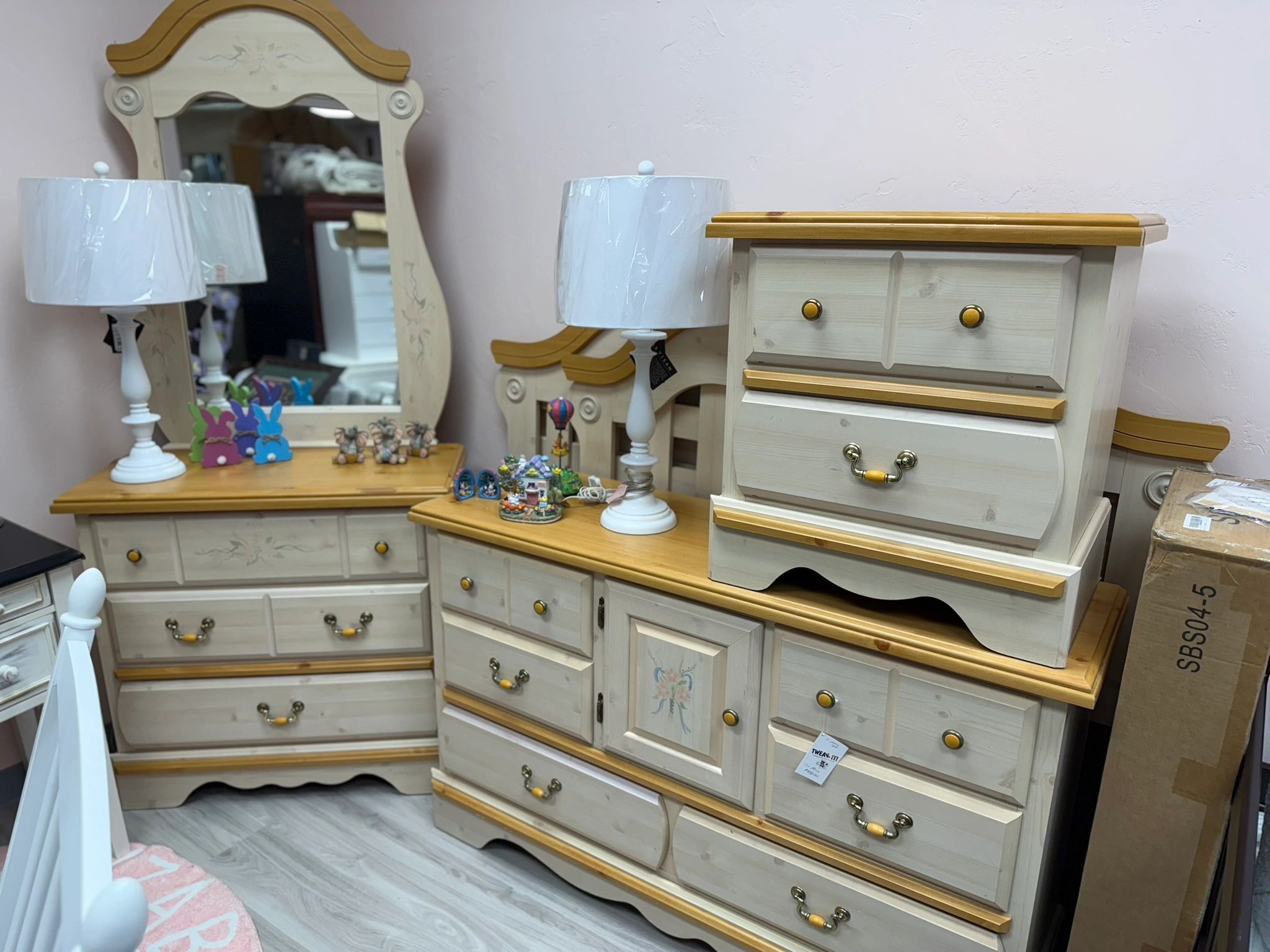 USED – KATHY IRELAND PRINCESS BOUQUET 6 PIECE BEDROOM SET – CHEST DRESSER, DRESSER, MIRROR, NIGHTSTAND, TWIN HEADBOARD, FULL HEADBOARD