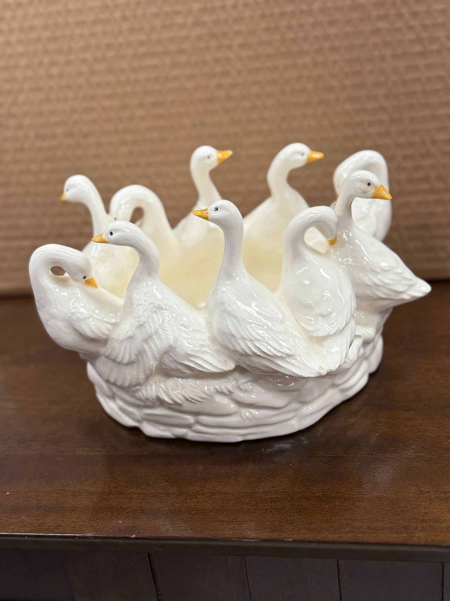 VINTAGE CERAMIC CIRCLE OF GEESE PLANTER – OVAL SHAPE – 9.5 X 9.5
