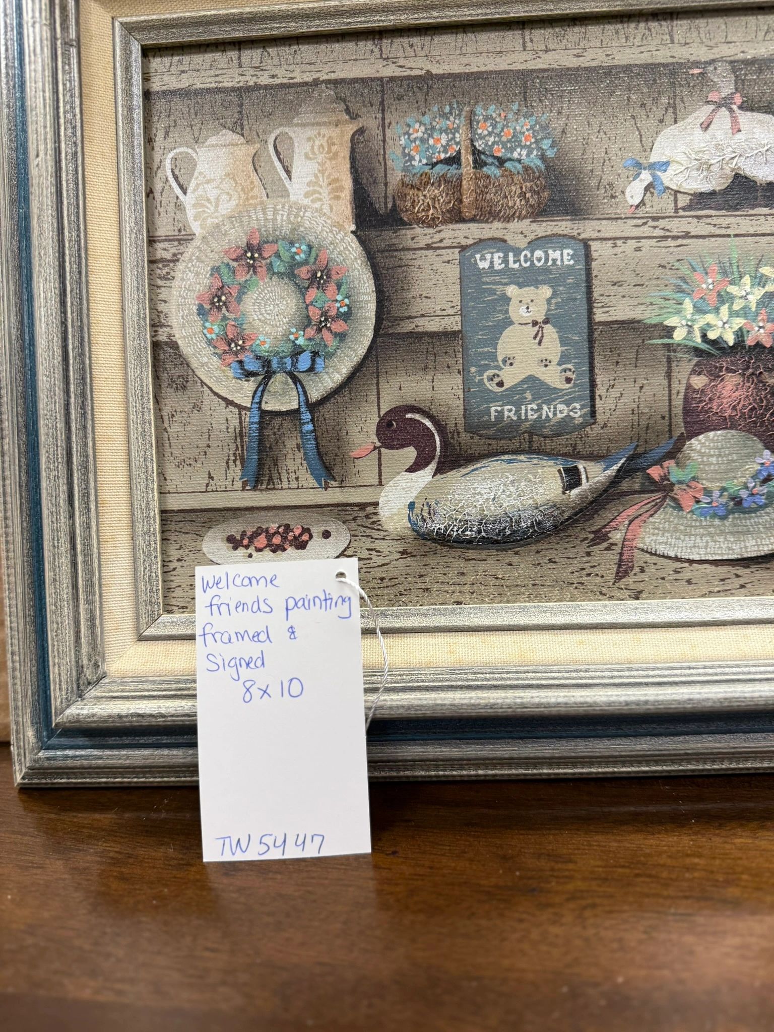 WELCOME FRIENDS PAINTING FRAMED AND SIGNED