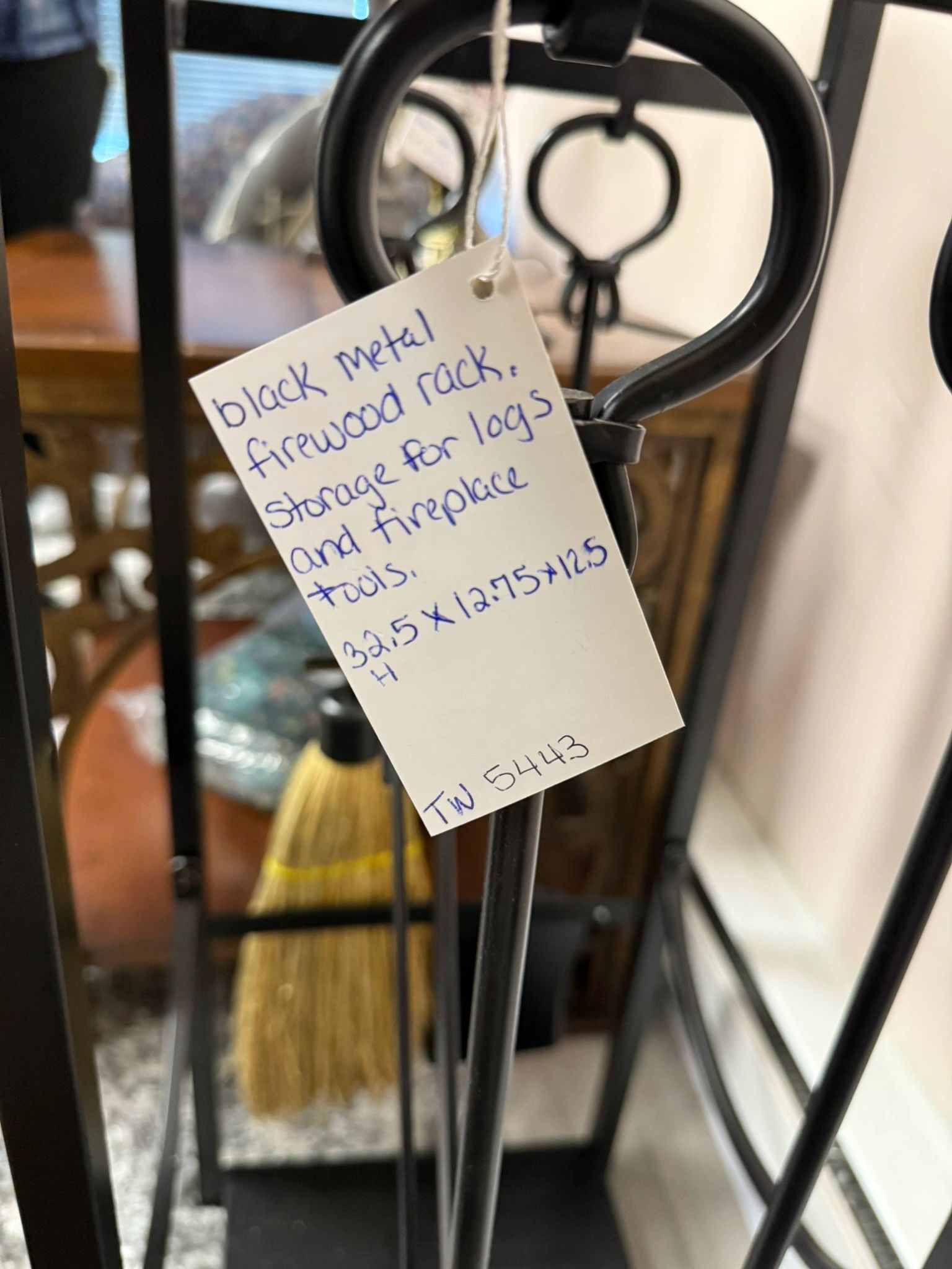 Organize your fireplace essentials with this sleek Black Metal Wood Rack. Featuring fireplace tools and a sturdy design, it adds both style and functionality to your personal home.