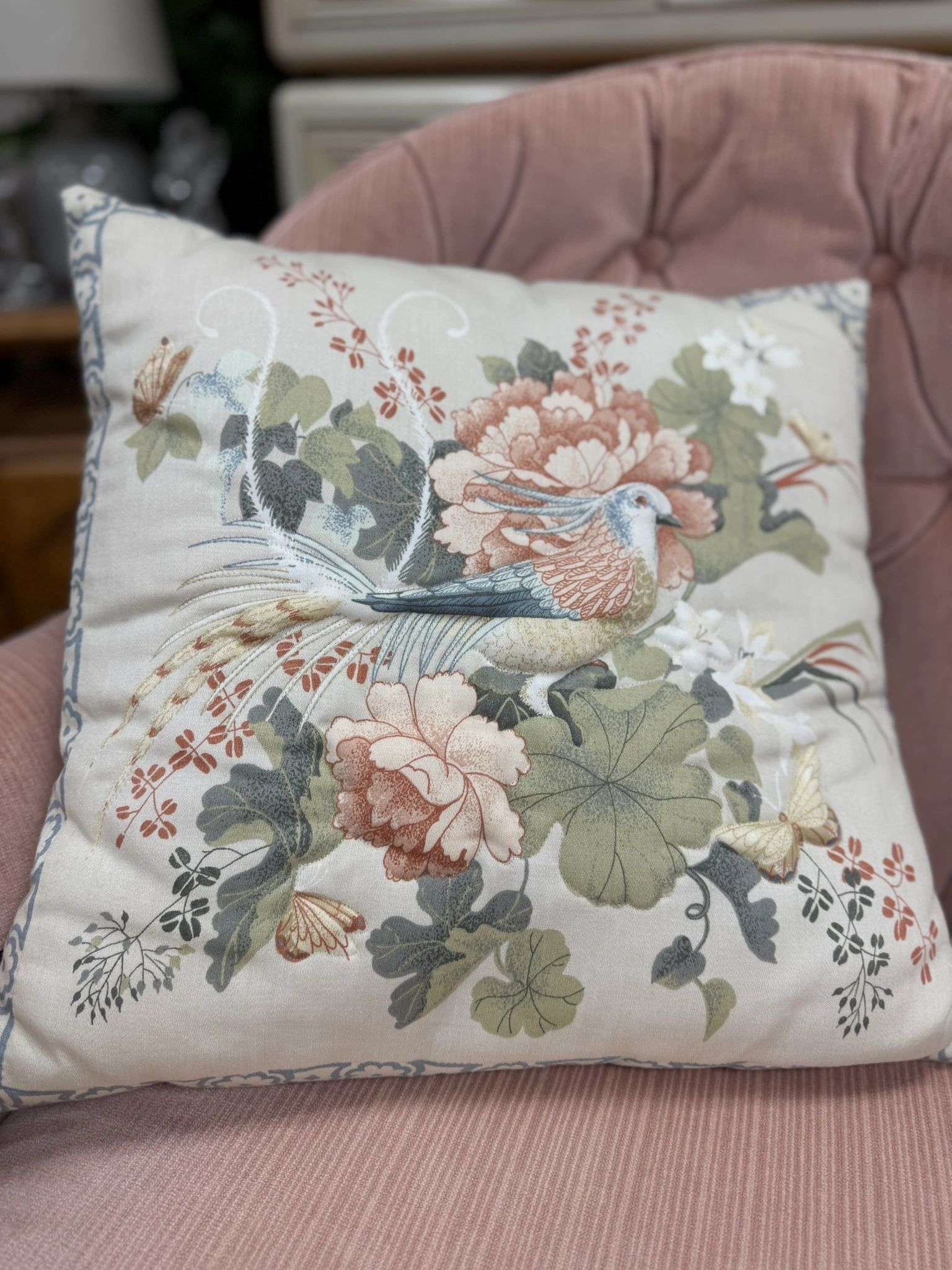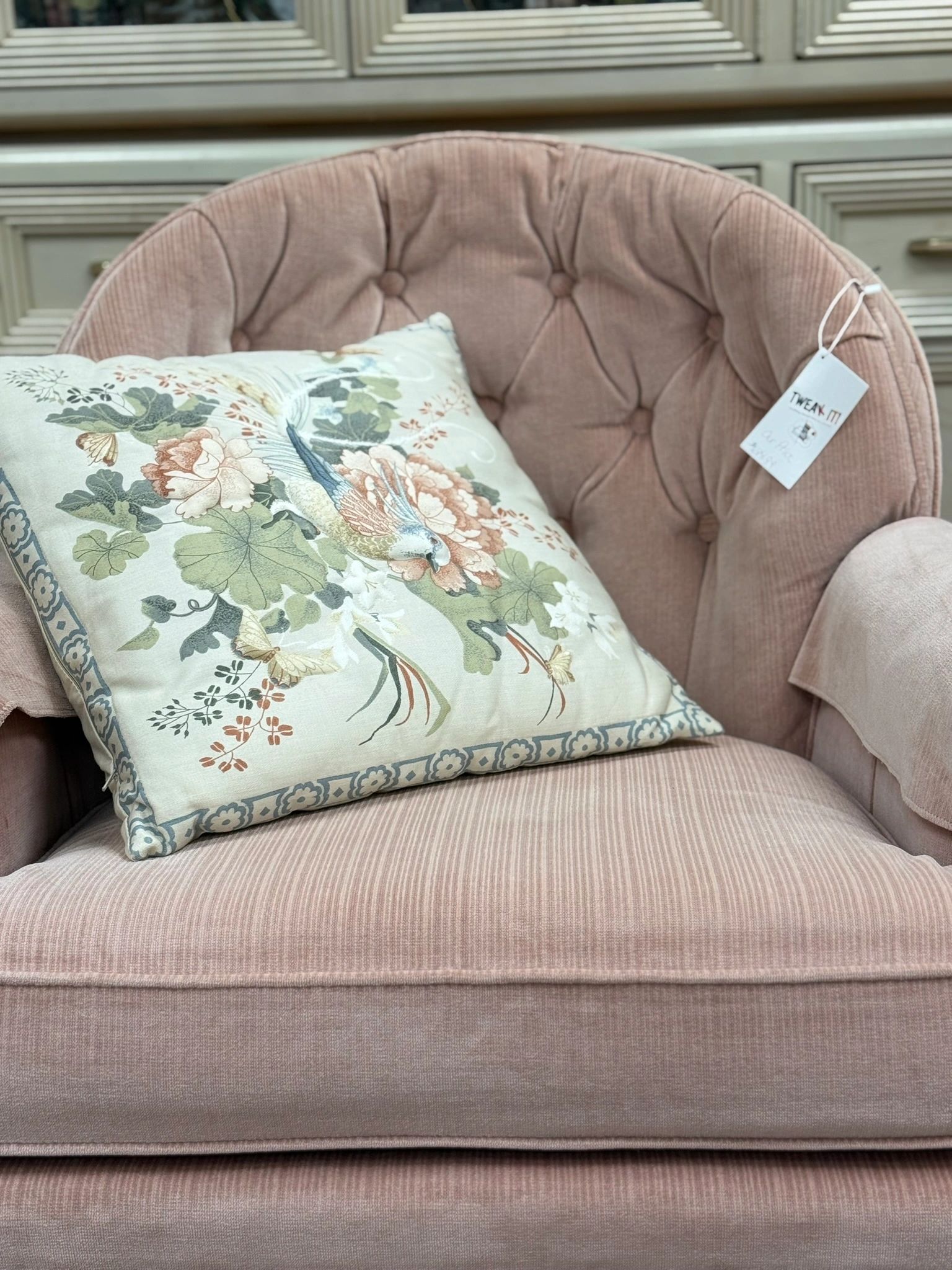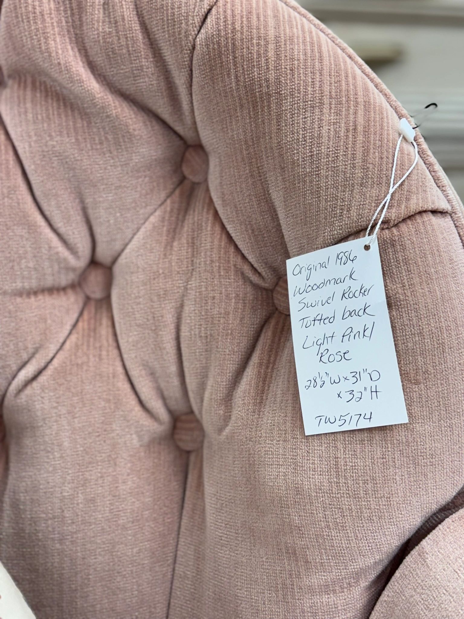 WOODMARK ORIGINAL TUFTED BACK SWIVEL ROCKER WITH DECORATIVE THROW PILLOW – 1986