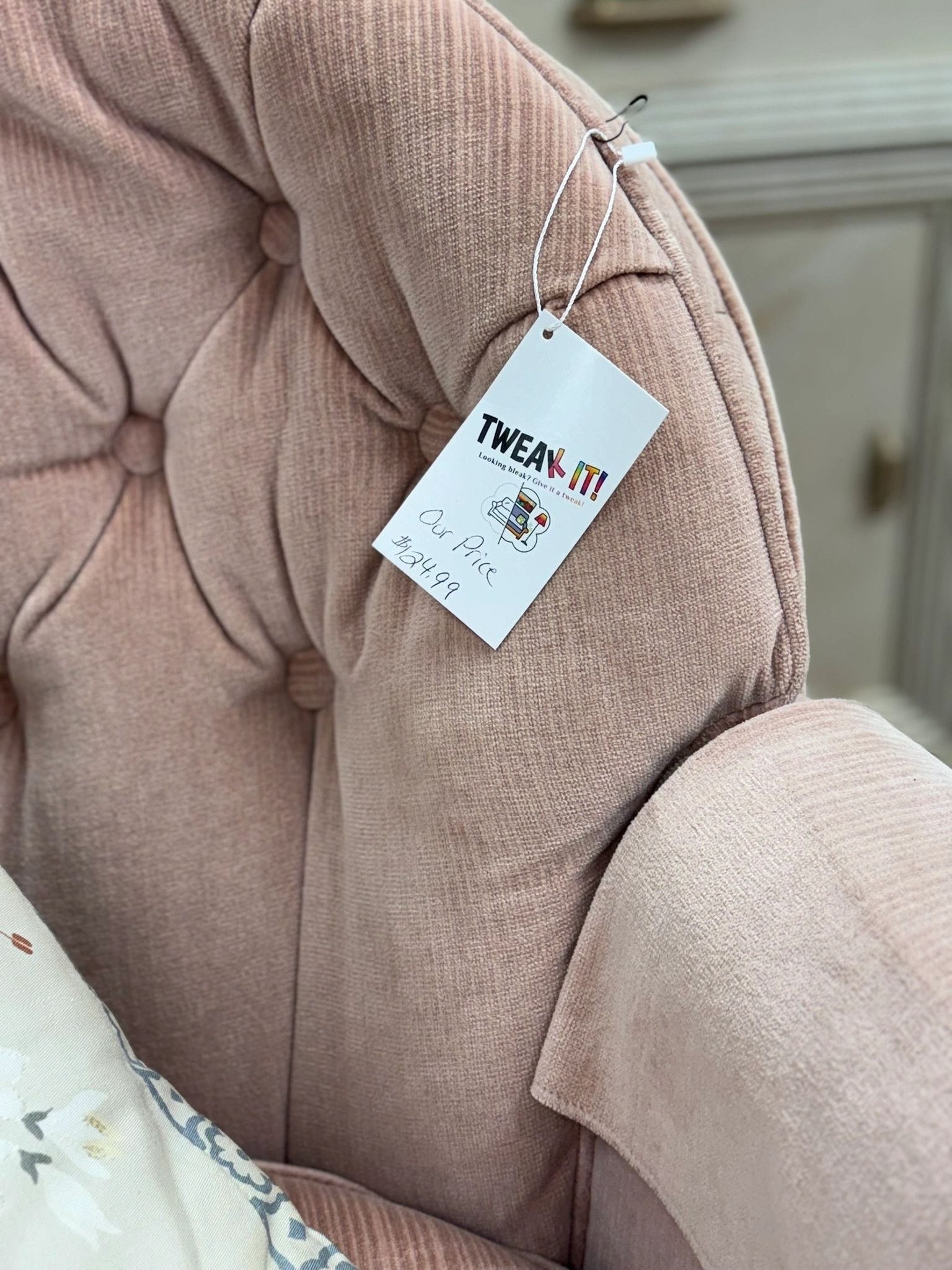 The Woodmark Original Tufted Back Swivel Rocker is a timeless addition to any home, featuring a decorative throw pillow for added comfort and style. Perfect for cozying up with a good book.